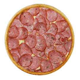 Molho de tomate, mucarela, calabresa, alho e oregano.
