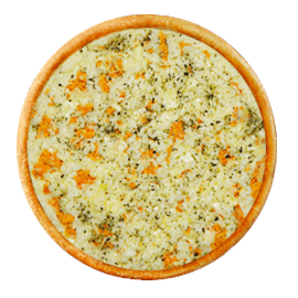 Molho de tomate, mucarela, frango desfiado, catupiry e oregano.