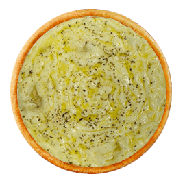 Molho de tomate, muçarela, alho desidratado, parmesao e oregano.