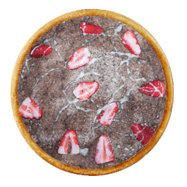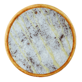 Muçarela, abacaxi, chocolate branco, coco ralado e leite condensado.